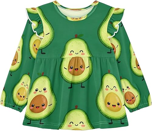 Burritos Pattern Girls' and Toddler Ruffle Long Sleeve Shirt Girls Cotton Tee Tops 18M-5T