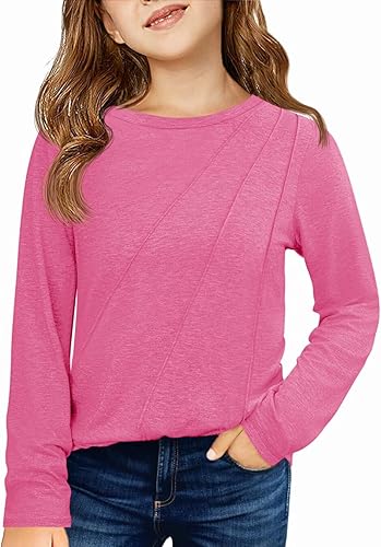 Haloumoning Girls Long Sleeve T-Shirts Kids Summer Fall Crewneck Tops Basic Tees 5-14 Years