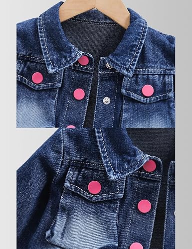 DESIGN DETAILS: Jacket includes front pockets and collar, while skirt features functional front pockets and decorative button placket. The classic denim jacket and skirt are paired with a retro, distressed dark blue, simple and never out of style. Let your child easily create retro fashion styles.
