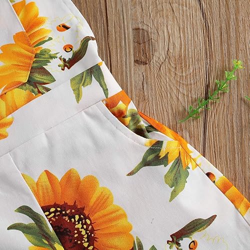 Design: Girls summer clothes, with sunflower print and pockets design, elastic waist, the suspender shorts can provide a comfortable feeling and bring a pleasant atmosphere.
