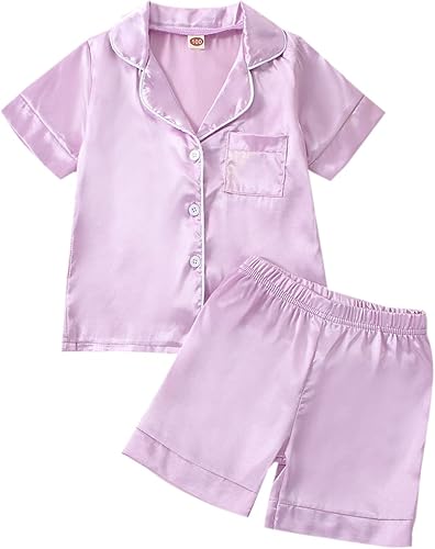 Package: 1x short sleeve button down sleep shirt + 1x short pajamas bottoms, 2-piece silk pajamas set for toddler kids baby girl, cute cow print pajamas clothes.