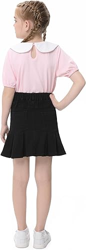 Feature: Elastic waist, pleated jean skirt for girls, pocket side, mini denim skirts