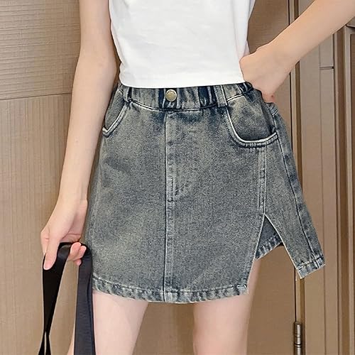 2025 Trendy Denim Skorts for Girls High Waisted Y2k Mini Skirt Stretchy Denim Shorts Side Split Skirts for Teens Girls(Light Blue,12-13 Years)