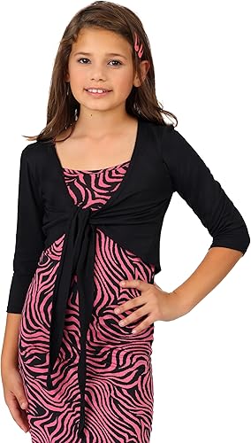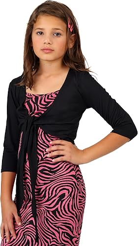24seven Comfort Apparel Girls Tie Front Cropped Cardigan Shrug Perfect for Layering Comfortable Machine Wash(Black,Large)