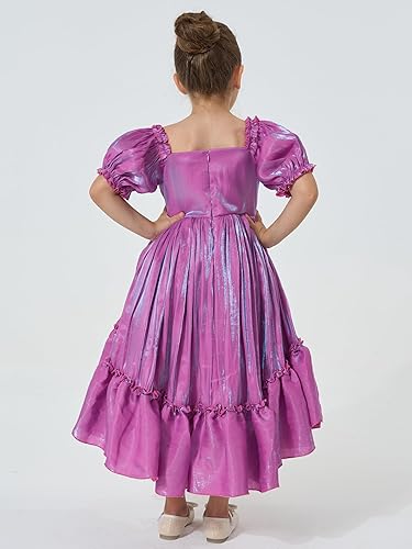 2Bunnies Girls Shimmer Petticoat High-Low Ruffled Puff Sleeve Holiday Party Gown Costume Princess Dress(Iridescent Orchid,3-4T)