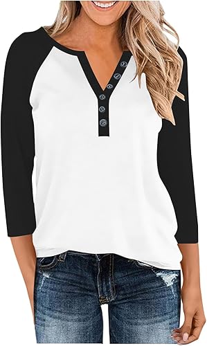 Match: Pair our 3/4 sleeve tops with leggings, skinny jeans, or shorts for a versatile and stylish look. henley t shirts for women henley shirts for women short sleeve henley tshirts shirts for women color block tops for women color block shirts for women color block t shirts for women color block tshirt for women color block tees for women color block blouses for women color block button down shirt women