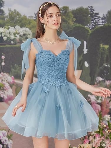 FEATURES: 3D Butterfly, Homecoming Dresses for Teens, Lace Appliques, A Line, Homecoming Dresses Sparkly, Sequins Homecoming Dresses, Corset, with Bow, Puffy, , Open Back, Empire Waist, Sleeveless, Knee Length, Flowy, Backless, Lace up, The Hoco Dresses 2025 are The Best Choice For Your Different Occasions