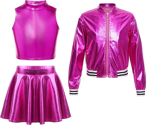 Sleeveless, crop tank top for girls, glossy metallic appearance. Solid color, pull on closure