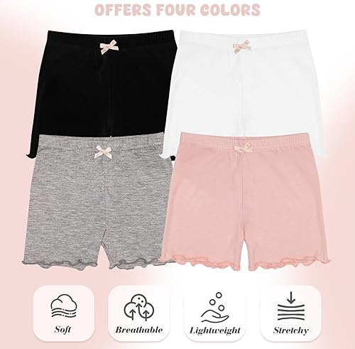 Package Includes: You will get 4 pack cartwheel shorts for girls in white, gray, black, and pink (waist 17-25 inch, height: 9.4-13.3 inch)—giving you plenty of stylish color options for every day