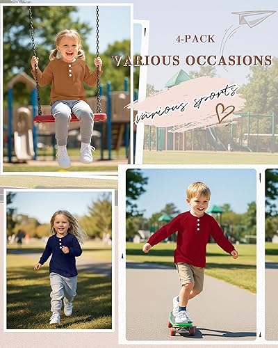 4-Pack Warm Value: get four cozy thermal long sleeve shirts in one convenient set – excellent for daily wear and easy outfit rotation; Ideal for toddler boys and girls needing reliable warmth