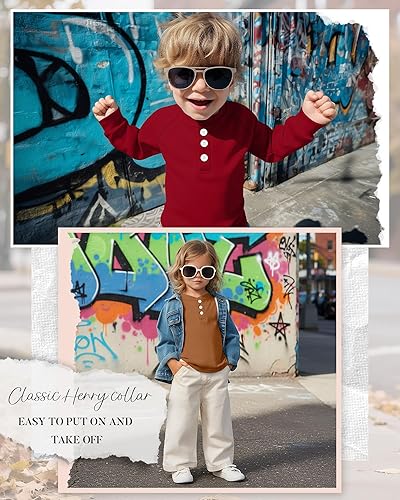 Easy-wear Henley Style: classic henley neck design makes dressing active toddlers simple; Ideal as basic long sleeve fleece tees for layering or wearing solo