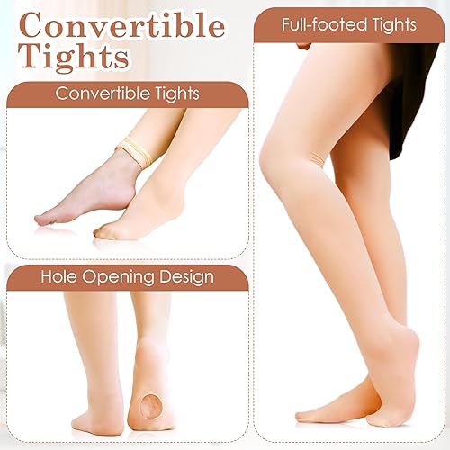 Package Includes: You will get 4 pairs pink girls' dance tight in two styles, 2 pairs full-footed tights for great fit control and durability, 2 pairs convertible tights with a round opening at the bottom of the sole, convertible between full tights and footless, easy to extend your feet out of the hole to breathe