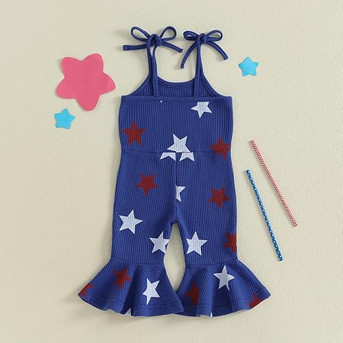 MATERIAL: 95% Cotton waffle knitted jumpsuit, toddler fourth of july outfit girl, soft and comfortable little girl 4th of July outfits, cute and unique 4th of july outfit for toddler girls and kids