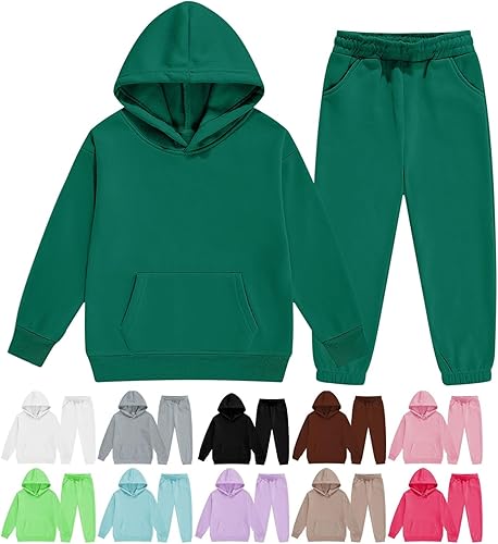 Girls Boys 2 Piece Tracksuit Athletic Sweatsuits Sets Hooded Sweatshirt and Jogger Sweatpants Clothing Sets for Kids(A-green,18-24 Months)