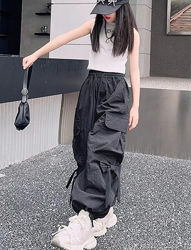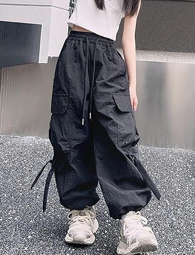 Features: The girls work pants are equipped with a bow and a double layered elastic waistband that can be freely adjusted. The girl's parachute pants have multiple pockets for easy carrying of items.