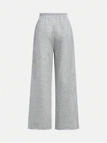 Floerns Girl's 2 Pcs Elastic Waist Wide Leg Athletic Running Sweatpants(Black and Grey,11 Years)
