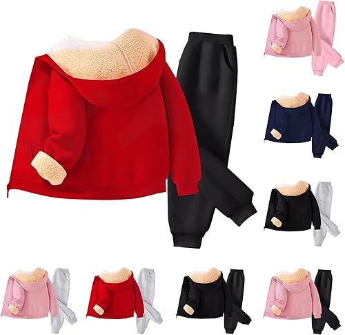 Fur description: Kids Sherpa Lined Fleece Sweatsuit Boys Girls Sweatshirt Joggers Sweatpants 2 Piece Tracksuit Set