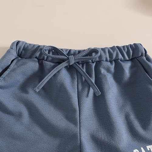 Size 6-12 Years Girl's Tracksuit Sets 2 Piece Outfits Letter Print Vacation Tee Top and Drawstring Waist Shorts(Blue,7-8 Years)