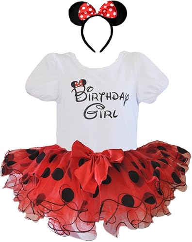 • [Three Piece Set] This hand made three piece birthday girl set includes a soft birthday girl t-shirt, triple-layered polka dot tutu dress with extra stretchy elastic waistband for comfortable snug fit and a matching polka dot headband, perfect for a girls birthday party outfit!