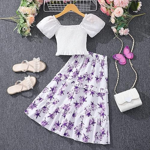 Features: Girls 2PCS Ruffle Hem Top & Skirt Set Style.Well made & great quality fabric, friendly skin for kids; adorable & attractive ruffle and hem design; Square neck and puff sleeve, elastic blouse design,easy for girls to wear; Long maxi ruffle hem skirt,floral print,great for girls wearing on any occasions.