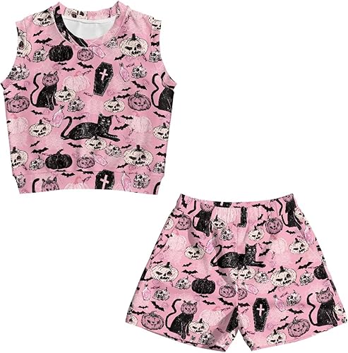 2 Piece Girls Summer Outfits with Tank Tops and Shorts Casual Clothing Set for Home Outdoor