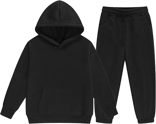 【Design】The kangaroo pocket of the pant sets are enough to carry your Things,active sweatshirt, hooded, long sleeve, solid color, kangaroo pocket.youth long bottoms elastic waistband easy put on, small side pocket to storage little items. so it is convenient,this athletic sweatsuits sets for boys girls featured has a pullover hooded with a very soft cut to make you child feel comfortable, designed for a slim fit, especially the windproof cuffs and hem fit most people.