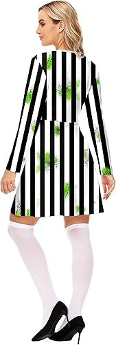 Remimi Halloween Black and White Stripe Costume Dress Cosplay Printed Outfits One Piece Dress(Black White a,X-Large)