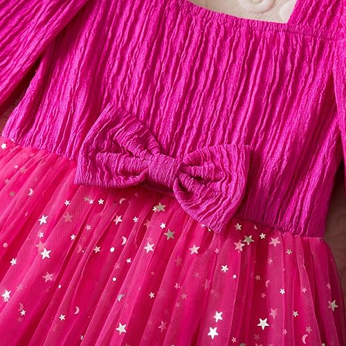 Nileafes Girl Knee-Length Dress Kids Long Sleeve Lace Casual Dresses(170c-hot Pink,2-3T)