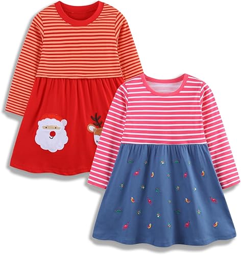 • GIRLS CARTOON DRESS: Our crew-neck long sleeve cotton dresses almost fit for all season. They are great for laying on cooler days with tights, leggings or jackets. Keep your little one warm during the cooler season of fall and winter.