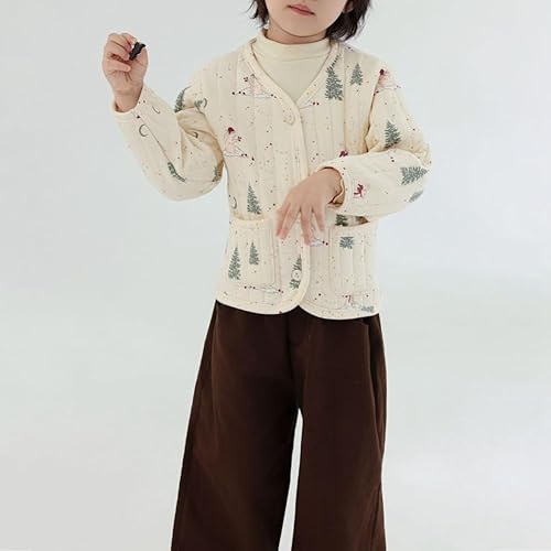 Toddler Boys Girls Floral Quilted Jacket Kids Lightweight Winter Coat Button Padded Warm Outerwear Puffer Jackets(Beige Trees,4-5T)