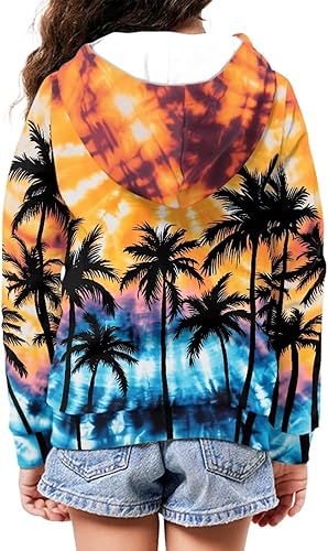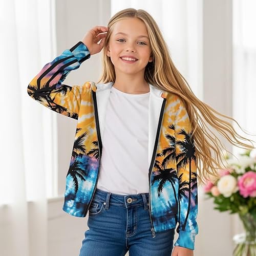 Forchrinse Pink Cow Girls Toddlers Fleece Hoodie Zip Hoody Sweatshirt with Pockets(Hawaiian Palm Tree Tie Dye,Large)