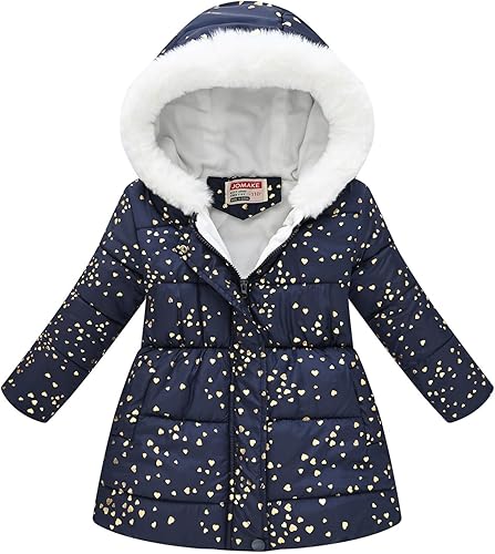 • Design: The girls soft quilted dress coats is made with a durable smooth zipper, and an artificial fur trimmed hood provides extra warmth in harsh winter weather. 2 super warm hand pockets can warm hands, and the cute print improves the appearance.