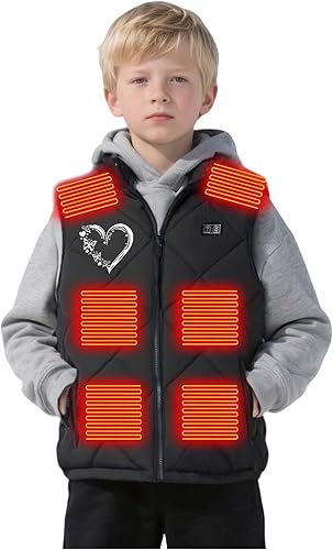Heated Jacket for Kids Sleeveless 13-Zones Heated Coat Winter Warm Puffer Vests Boys Girls Outdoor Skiing Heat Vests(06-black,10-11 Years)