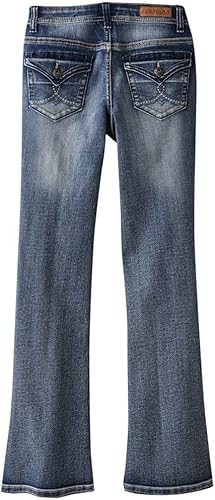 She'll set a trend with these girls' Mudd bootcut jeans decorated with button-flaps, embroidery and faded details. In light wash. PRODUCT FEATURES 5-pocket Zipper fly Bootcut styling Inner adjustable waistband FABRIC & CARE Cotton, polyester, spandex Machine wash Imported