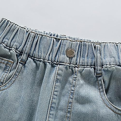 Girls Plus Size Jeans Wide Leg Baggy Denim Pants Casual Cute High Waisted Y2k Streetwear Trousers with Pockets(Light Blue,7-8 Years)