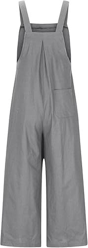 Betadog Jumpsuits for Girls Solid Long Pants Sleeveless Spaghetti Strap Casual Loose Rompers Casual Overalls with 2 Pockets(Grey,5-6 Years)