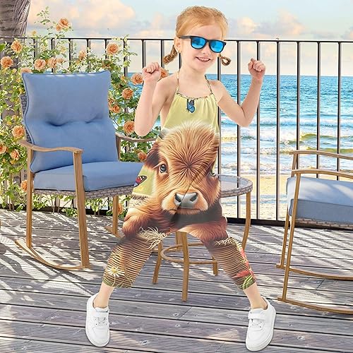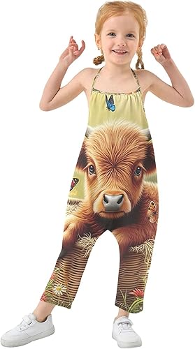 Toddler Rompers Baby Jumpsuit for Girls Easter Kids One Piece Cute Highland Calf Basket Floral Summer Fashion 1t(6 Years)