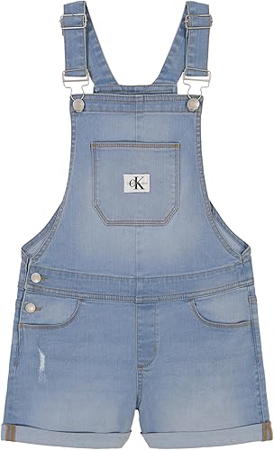 Calvin Klein Girls' Stretch Denim Shortalls, Boyfriend Fit Jean Overalls with Adjustable Straps