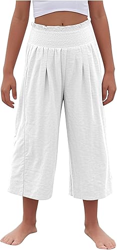 wide leg capri pants girls 10-12, white flowy capri pants for girl, clothes for teen girls 12-14 trendy, linen girl's capri pants, girls flowy wide leg capri pants loose fit palazzo capri pants, drawstring loose capri pants girl, flowy capri pants for girl summer
