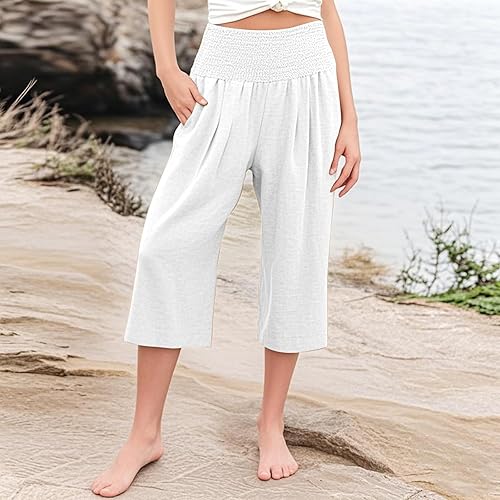 Fur description: Girls linen pants for summer, linen capri pants girl, white pull on capris for girl, comfy pants for girl loose fit, pantalones capri para mujer, wide leg pants for girl summer, wide-legged capris girl, capri summer pants for girl