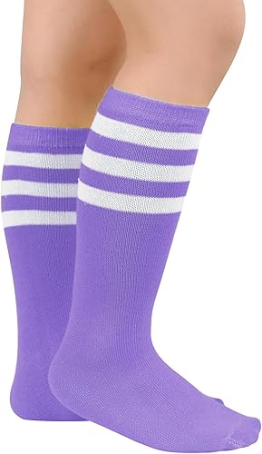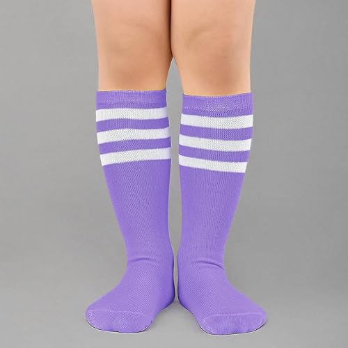 Kids Child Athletic Socks Striped Knee High Tube Soccer Socks Baseball Softball Socks for Toddler Girls(1 Pack Light Purple White,One Size)