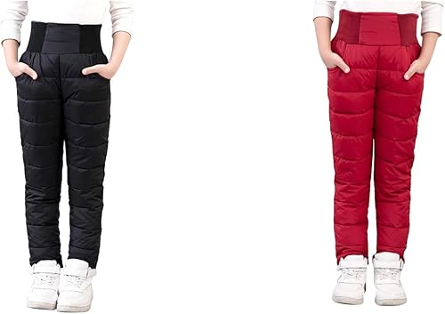 Little Girls Boys Solid Snow Pants Thick Winter Warm Kids Pants Girl Activewear Clothes Snow Wear Outfits (Red, 110) * 1PCS