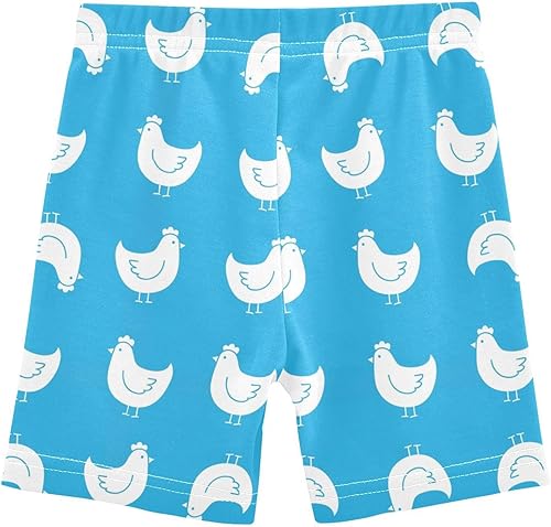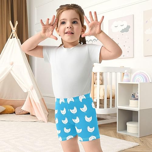 Rooster Blue Girls Bike Shorts Toddler Soft Cotton Cartwheel Under Dress Dance Shorts(Multi-rooster Blue,10 Years)
