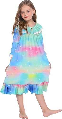 【Versatile Style】Available in both solid colors and playful prints, the version of this cute girl’s nightgown is generous and playful, which fits for all seasons. Little girls will feel like princesses in this sweet princess nightgown.