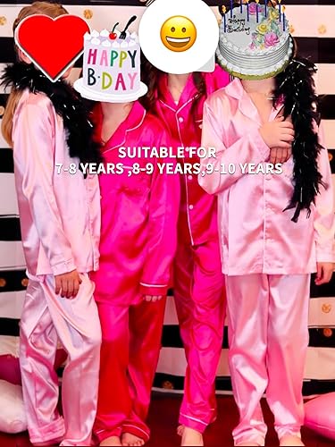 Girls 4 Piece Pajamas Set Silk Button-Up Top and Shorts Boys Sleepwear Nightwear for Kids(S Pink/Rose Red,8-9 Years)
