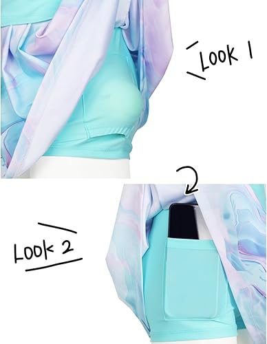 Designs:The girl’s sports tennis athletic set combine tie dye print and bright color. The tank top is sleeveless and crew neck, the athletic skorts/skirts with pleated designs make it more fashion,sporty. And built-in shorts that are designed with phone pocket and ball pocket to make it more convenient.