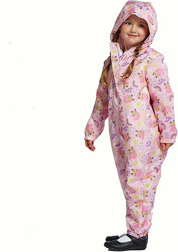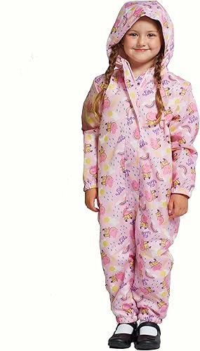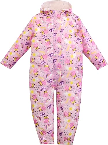 Officially licensed Peppa Pig merchandise. A pink hooded puddle suit for kids, featuring Peppa Pig