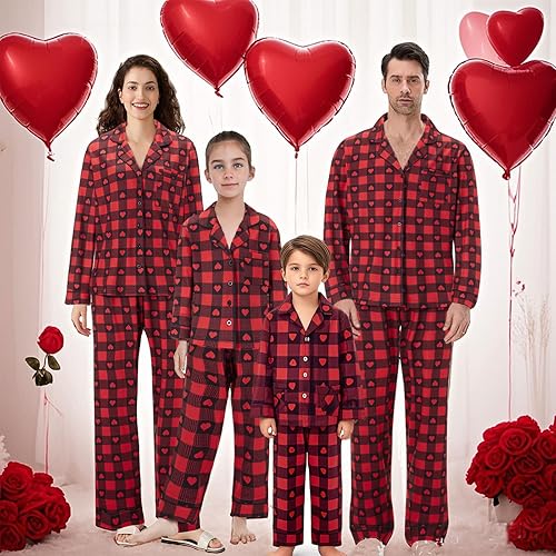 • [Valentine's Day Pajama]: Long-sleeve plaid pajamas, with button design, classic style, suitable for wearing all year round and for various holidays