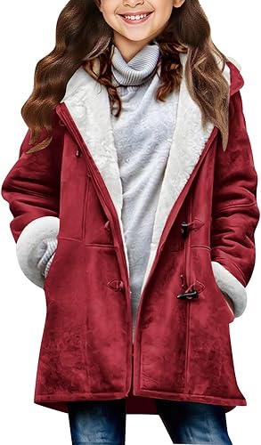Fur description: Girls Winter Coat Fuzzy Fleece Lined Hooded Jacket