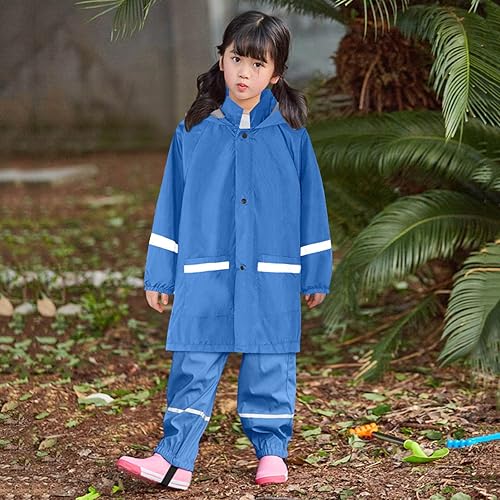 ☂Reflective Strip Design: Child rainwear trousers are made of skin-friendly materials and can be in direct contact with the skin. Reflective stripes around the legs of the rain pants increase for children's outdoor activities, especially at night, on foggy days, and on rainy days.=== kids rain gear baby rain poncho with hood baby water-proof rain pants toddler raincoat girls boys lightweight kids rain poncho water-proof jacket zipper up rain coat toddler boy rain jacket & pants